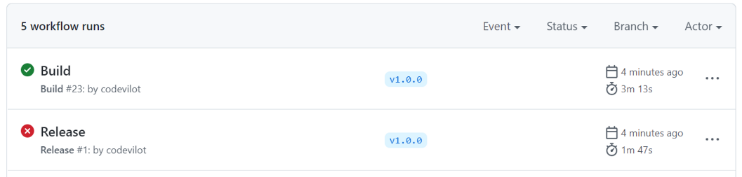 그냥 진행할 때 나온 것이 아니라, 릴리즈 과정을 재확인하고 싶어서 이를 다시 실행하고 나온 에러. release와 같은 경우에는, 한 태그당 한개만 release파일이 존재할 수 있다. 태그에 해당하는 파일 커밋을 잘 핸들링하고 커밋하면 해결된다