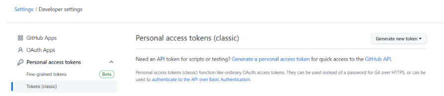 - Settings > Developer settings로 이동한다