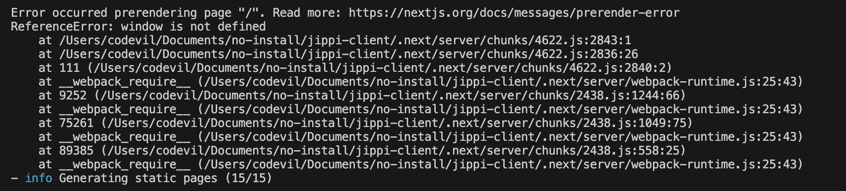 이 방법이 어느 정도는 유효했던 것은 처음에는 Context를 공유하는 모든 페이지에서 prerendering 에러가 발생했었지만, 이 방법을 사용하니 ImageFetchProvider만 사용한 페이지만 prerendering 에러가 발생했다.