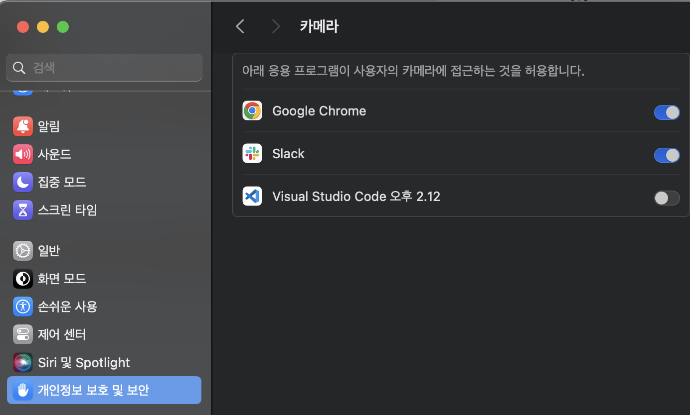 [Electron]Error accessing the camera: DOMException: Could not start video source - 맥북